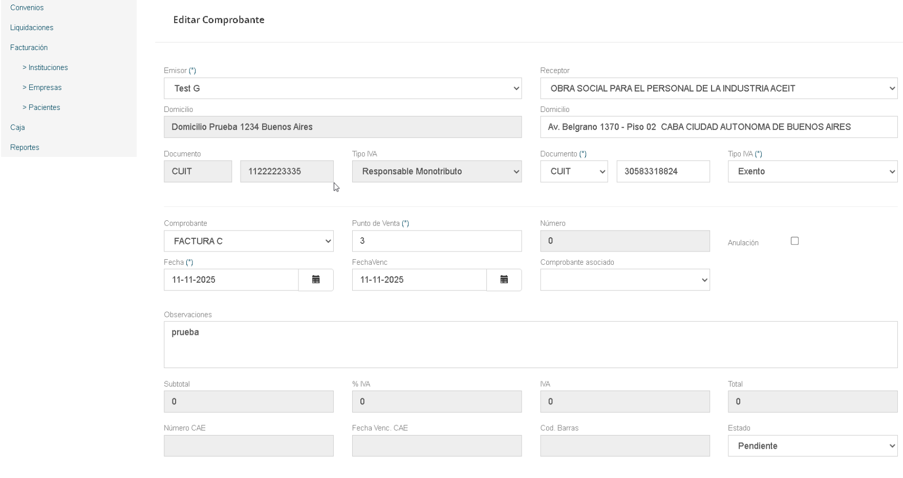 Factura a Instituciones